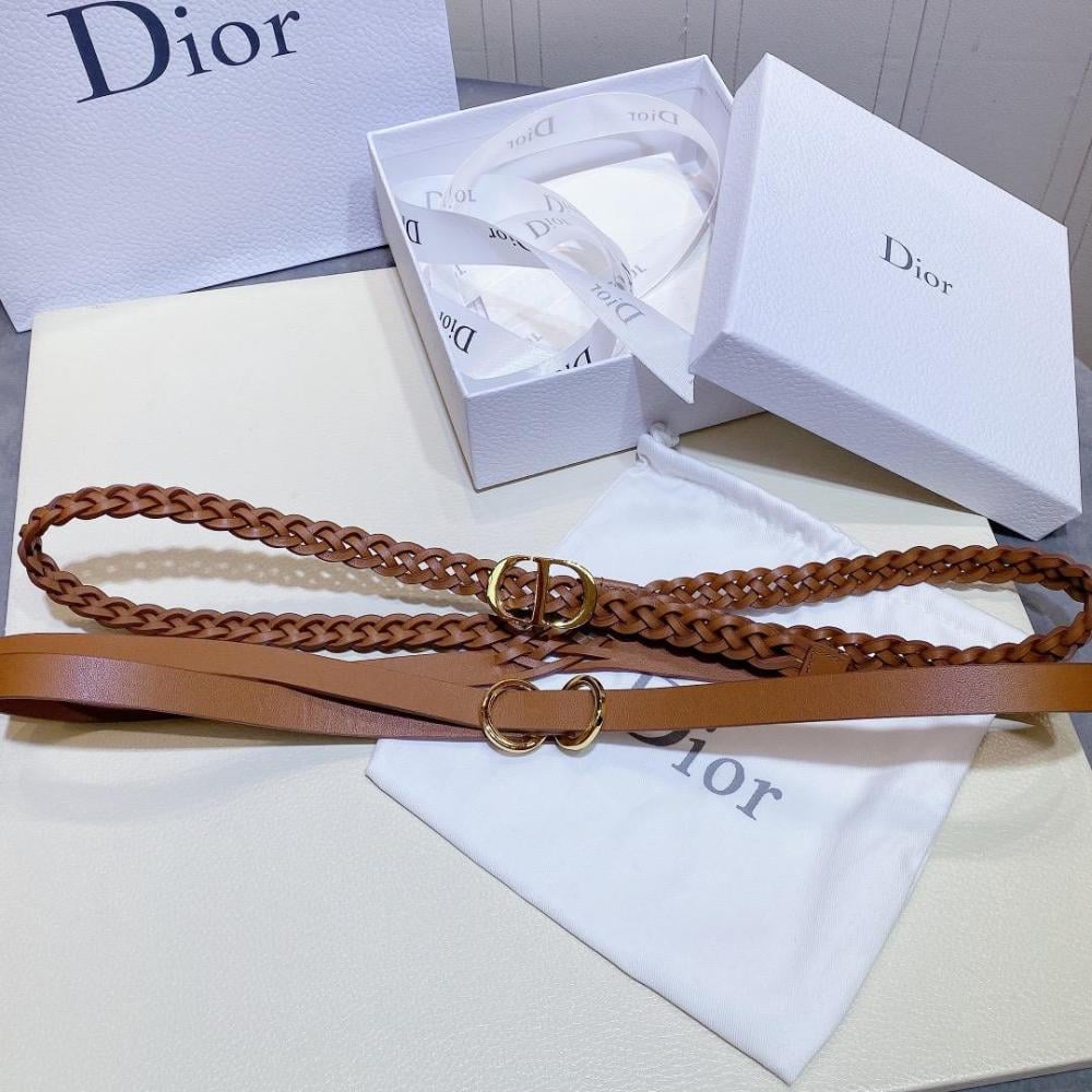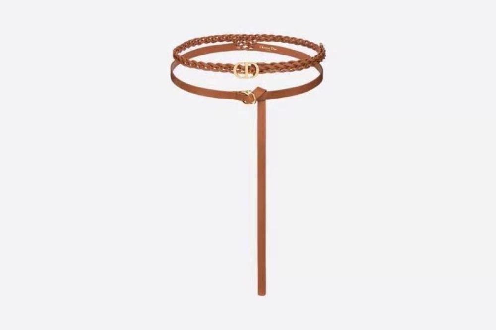 Dior women's two-layer belt, thin, distinctive caramel color