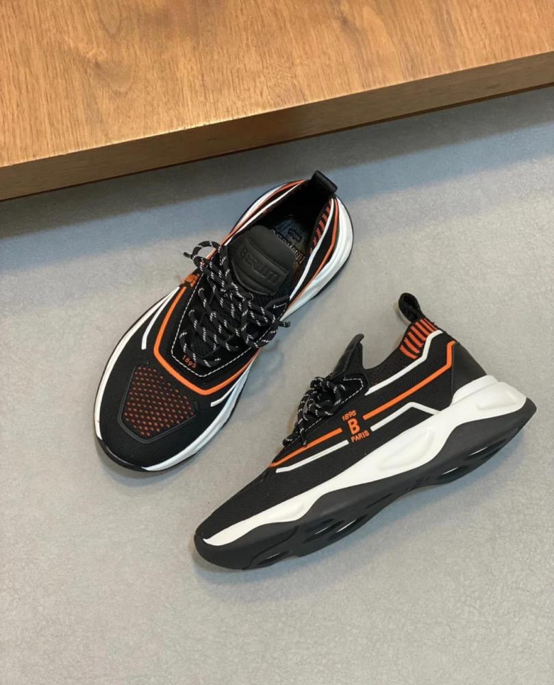Elevate your sporty look with the Berluti men's mesh sneaker, which combines comfort and style in one design. This shoe comes in a stylish black color with striking orange stripes, adding a touch of vitality and uniqueness to every step. Made from high-quality mesh materials, this sneaker is lightweight and provides excellent breathability, ensuring exceptional comfort while moving.