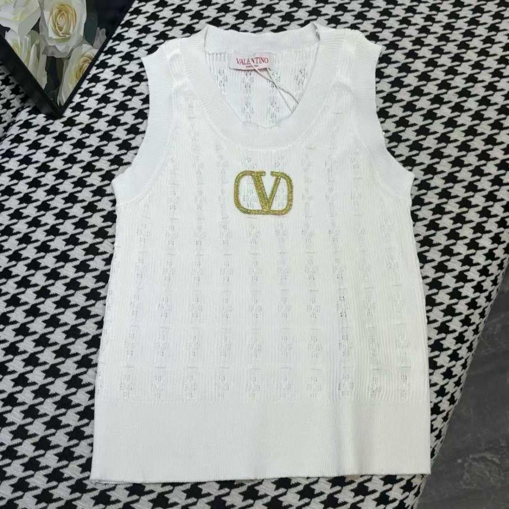 Valentino Women's Sleeveless White Embroidered Shirt with Gold Logo