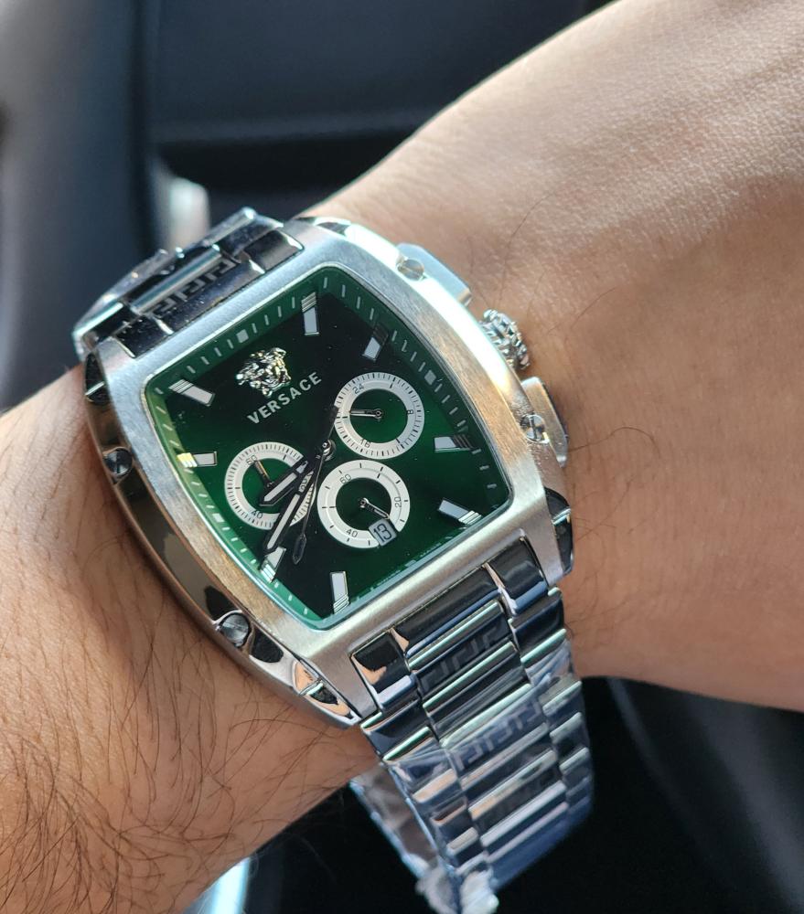 With its luxurious and modern design, the Versace E6H00423 men's watch is the perfect choice for the modern man who seeks distinction in every detail. This watch features a shiny silver color with a green dial that accentuates its beauty, giving you an elegant and attractive look for every occasion.