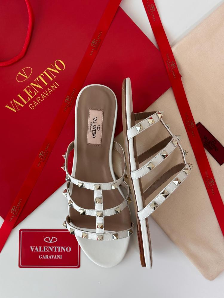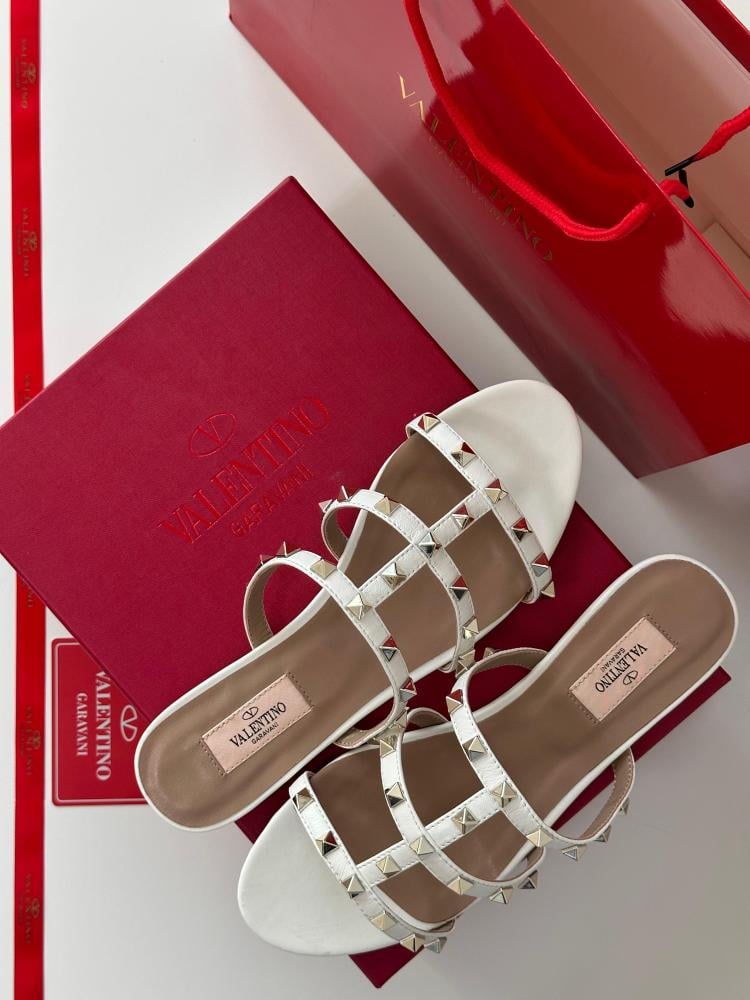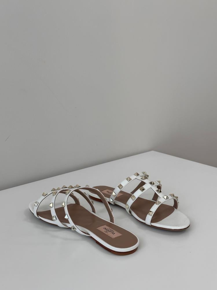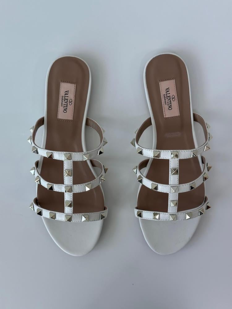 Valentino Rockstud Flat Sandal for Women in White with Studs