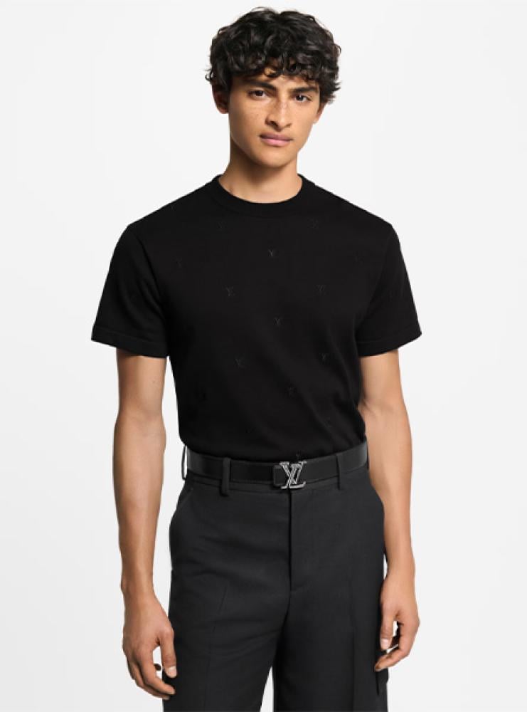Stand out with a sophisticated look with this black Louis Vuitton T-shirt, designed to combine simplicity and luxury in one piece. Made from luxurious cotton with a soft texture, it features elegant embroidery of the brand's logo on the chest, giving you a distinctive presence that reflects your refined taste.
