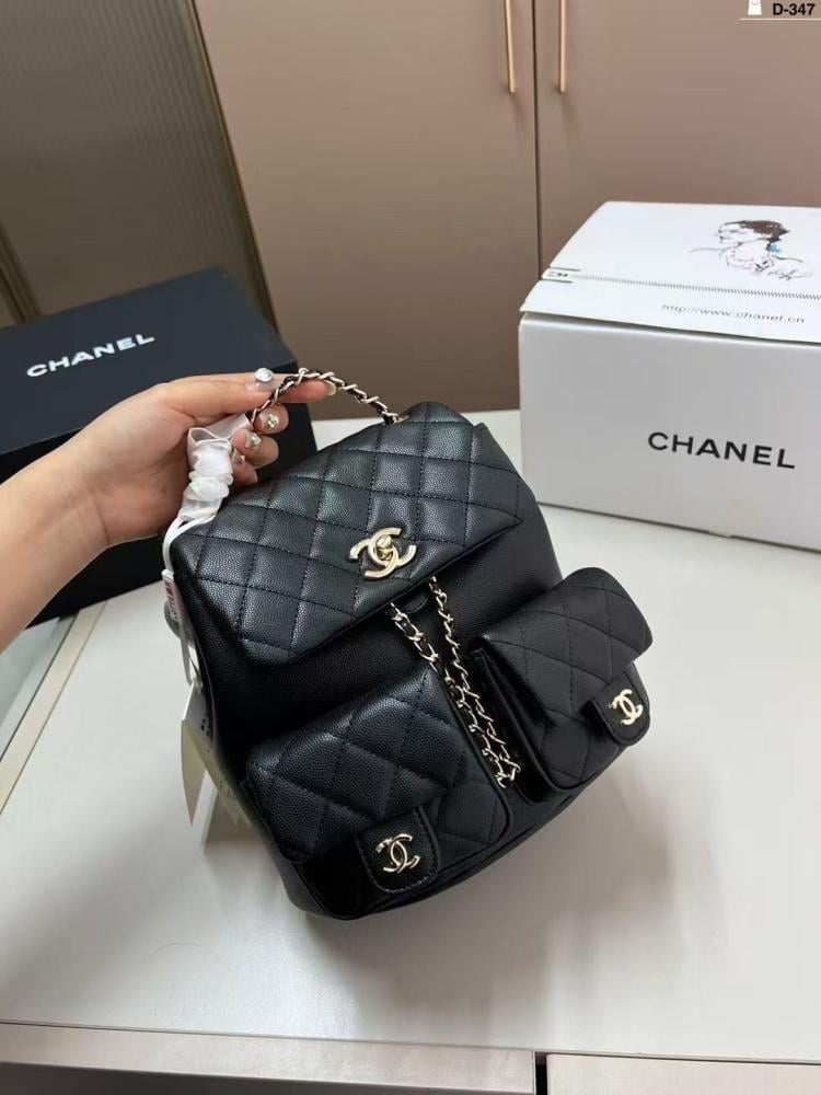 Chanel Duma Women's Quilted Leather Backpack with Functional Pockets, Black
