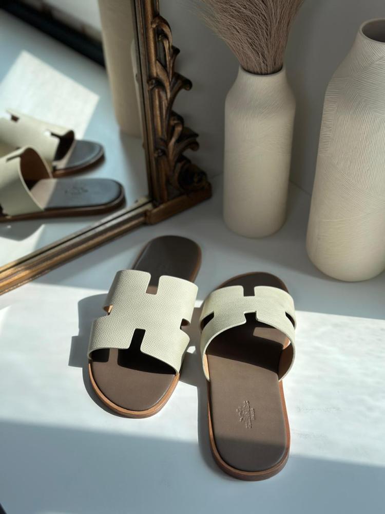 Whether you plan to wear it while commuting around the city or during your summer vacation, the Hermès Oran slippers in beige gray are the perfect addition to your wardrobe. Elevate your look with a piece that combines simplicity and luxury with every step.