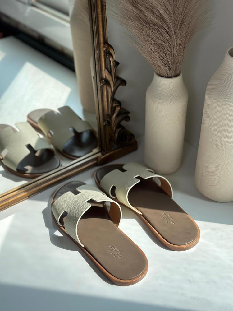 The Hermès Oran men's leather slipper in elegant beige-grey is an ideal choice for every man seeking distinction and comfort. Crafted from premium genuine leather, it reflects the high quality and meticulous craftsmanship for which Hermès is renowned. Its simple yet modern design combines a calm beige with elegant gray, adding a sophisticated touch to your look.