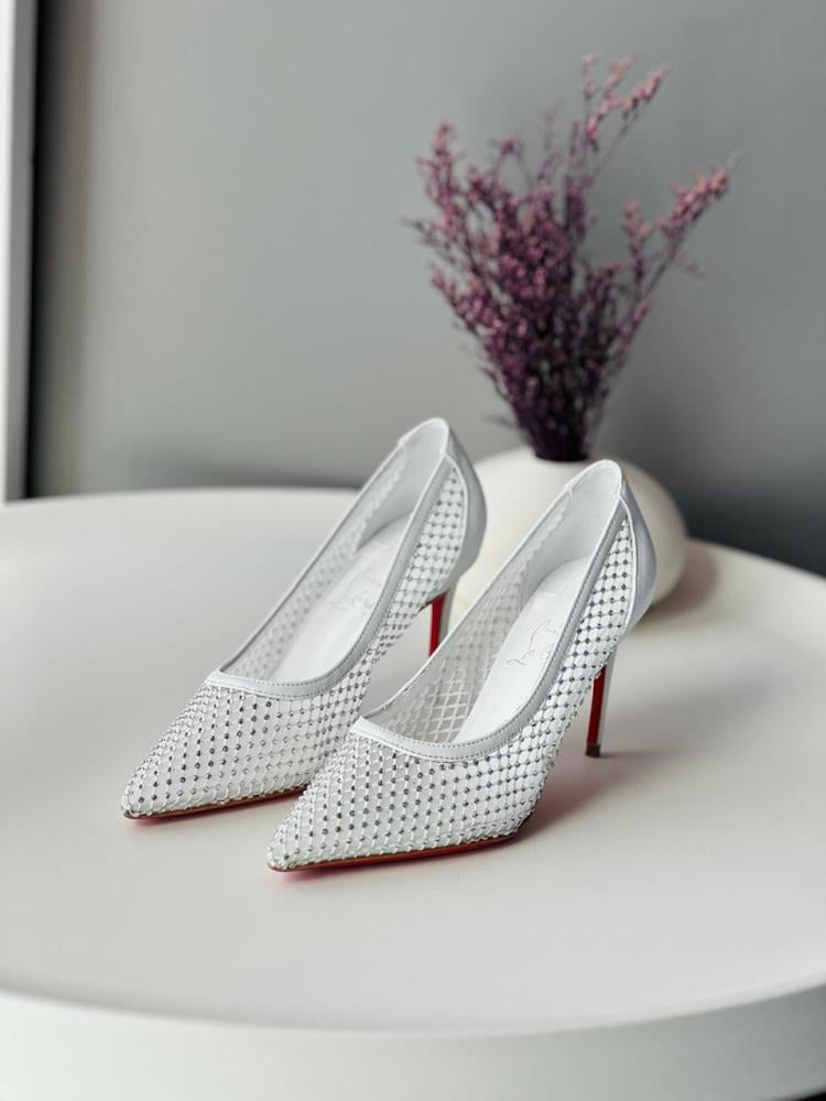 If you want to combine elegance and luxury in one look, Christian Louboutin's high-heeled shoes are the perfect solution! Available exclusively at iSeven Store, these white shoes, embellished with sparkling rhinestones, are perfect for any occasion where you want to turn heads.