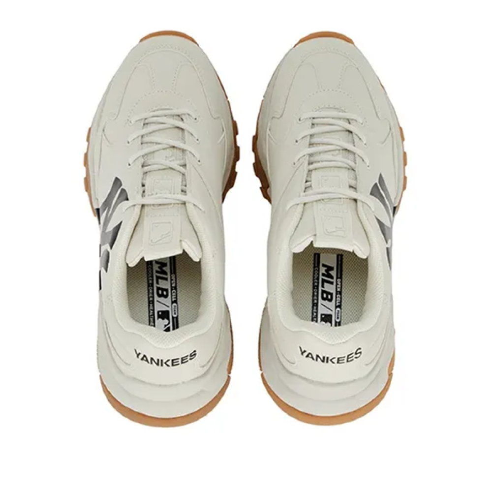 White sports shoes, New York Yankees shoes, honey sole, black logo