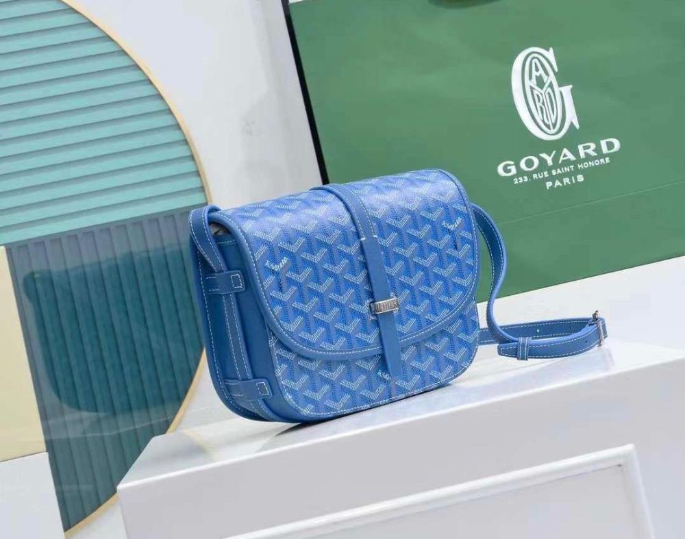 Joyader Belvedere Flap Bag with Shoulder Strap in Blue with Brand Print