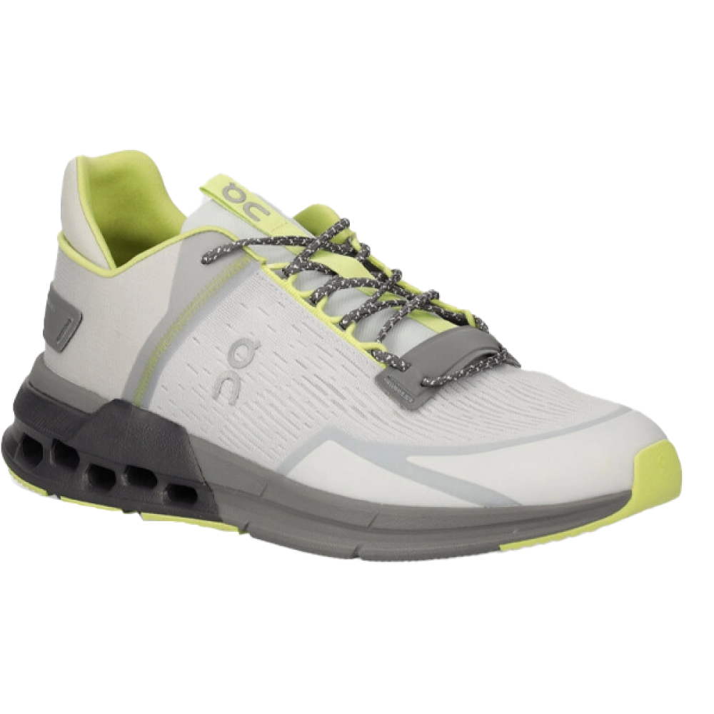 تجربة الجري تتخذ مستوى جديداً من الراحة والأناقة مع حذاء أون رانينج كلاود نوفا بلونه الرمادي والأخضر الحيوي. صُمم هذا الحذاء ليمنحك أداءً استثنائيًا في الجري والمشي بفضل تقنية CloudTec® المتقدمة، التي توفر توسيدًا فائقًا وامتصاصًا للصدمات في كل خطوة.