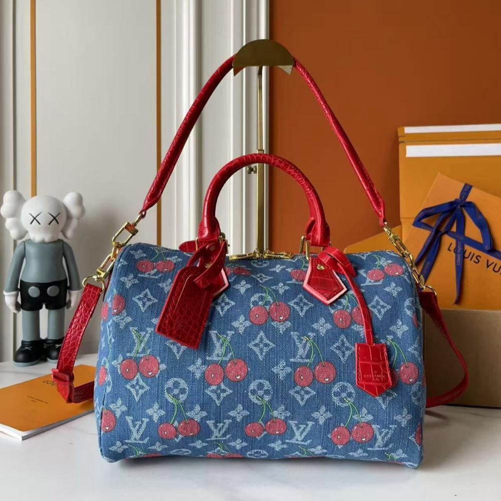 شنطه لويس فيتون سبيدي30 مونوغرام دينيم نقشة كرز