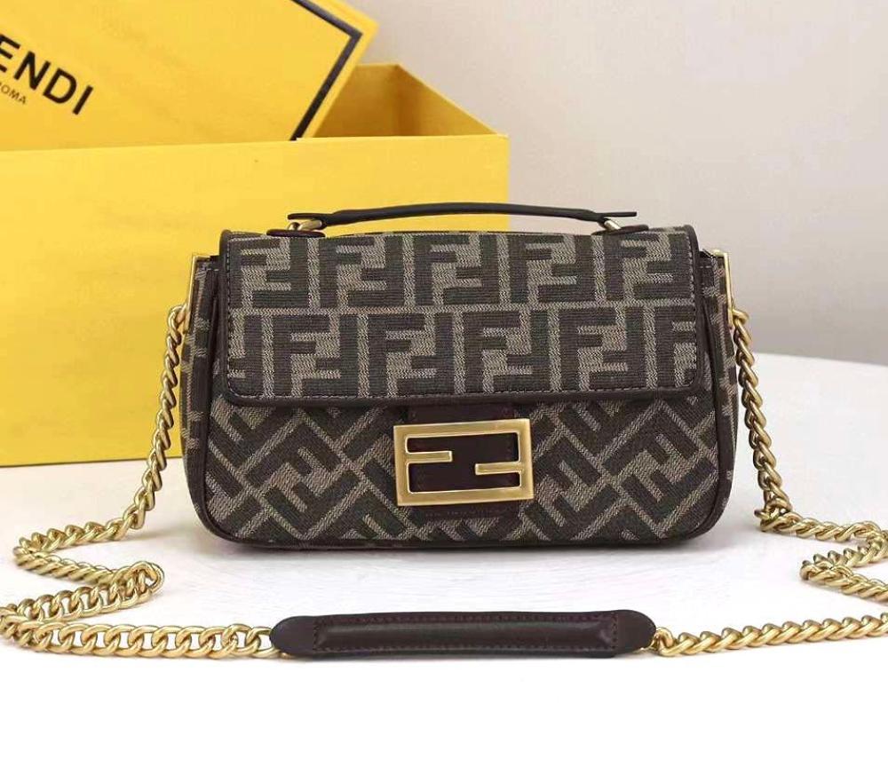 Valentino FF Baguette Flap Bag in Brown and Beige